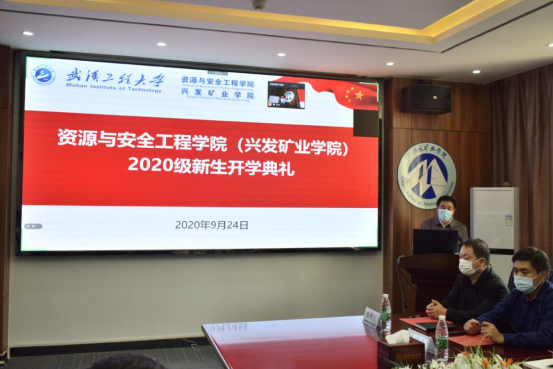 )2020级新生开学典礼在武昌校区领创大楼4楼会议室举行。学院院长池汝安,学院党委书记江本武,学院班子成员、各教研室主任、教师代表和全体辅导员等出席典礼。学院党委副书记李佳主持典礼。